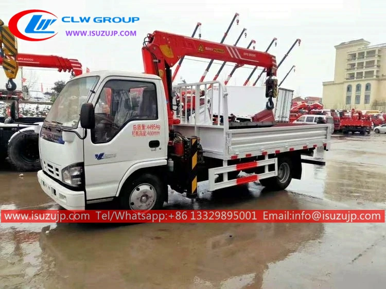 - ISUZU 3 ton sany crane truck also called as construction crane trucks, Isuzu truck loder vehicle, truck mounted crane, Lorry with crane, Folding boom truck crane is a type of machine can carry heavy weights and transport them.